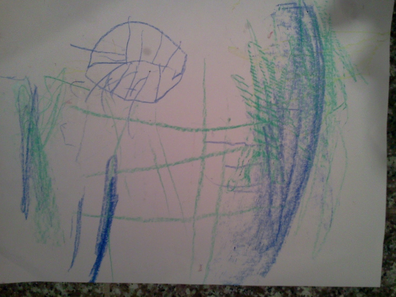 Here is a drawing Crispin shows great excitement about. It his play about the school survey monkey. Our school uses an on-line parent survery company called survey monkey, and this is the time of year that parents take the survey. To inspire parents, an organizer took a picture of a stuffed monkey on skis in the snow (or found a stock image of stuff) and has posted that photo with information about the survey around school.
